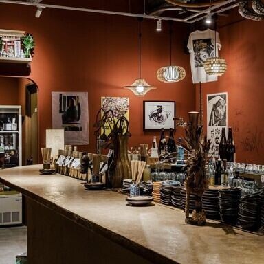 ≪西大橋駅から徒歩5分≫伝統的な木の引き戸を開けると広がるのは、朱色の壁と無骨な天井が織りなす「ちょっといい、なんかいい」立ち飲み空間。心地よい統一感の中で、大人の粋な時間をお楽しみください。お仕事帰りのちょい飲みに◎
